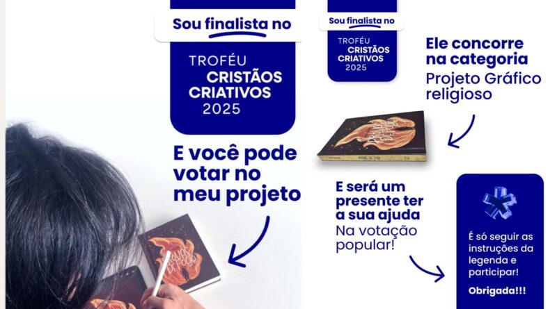 Para apoiar os finalistas, basta acessar o site www.criativoscristaos.com.br e votar em todas as categorias. Para votar na Tita Flexeira, vá até a penúltima página e selecione a categoria “Projeto Gráfico Religioso”. Ao final do processo, será exibida a mensagem de confirmação com a palavra “OBRIGADO”.